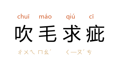 ⒈ 吹开皮上的毛,寻找里面的小毛病。语本后比喻刻意挑剔过失或缺点。也作「吹毛求瑕」、「吹毛取瑕」、「吹毛索疵」。
