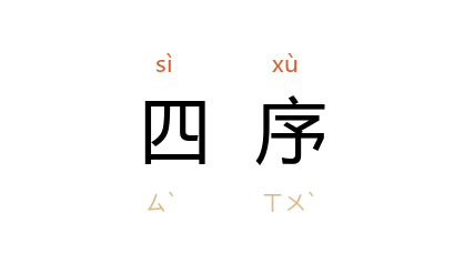 引《魏书·卷一〇七·律历志上》:「然四序迁流,五行变易。」唐·王勃〈守岁序〉:「春秋冬夏,错四序之凉炎。」