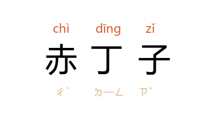 ⒈ 《类说》卷十三引唐李隐《潇湘录》:“洛阳牟颖郊外葬一骷髅,梦一人来谢云:我本强寇,为同辈见害。感公掩藏,愿阴护公。若有急,但呼赤丁子,即至矣。后数有应验。”后以“赤丁子”泛指鬼役,鬼仆。