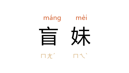 引《黄萧养回头》:“你看营房门口,盲妹来来往往,不若叫一两个来唱几隻歌。”郭沫若 《奴隶制时代·蜥蜴的残梦》:“盲目为奴的残忍行为一直到最近都还有,请联想一下 广东 所有的‘盲妹’吧。”