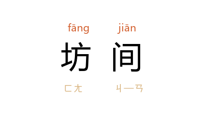 引清 俞樾 《小浮梅闲话》:“坊间有《今古奇观》一书,襍取古事,敷衍成书。”郑振铎 《论武侠小说》:“武侠小说的流行于复古时代的今日,又何足为奇呢!仅在这三四年中,不知坊间究竟出版了多少部这一类的小说。”王西彦 《古屋》第三部七:“不是普通坊间出售的那种,而是祖传秘制的。”