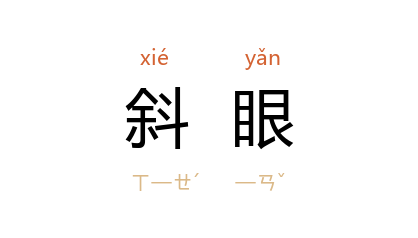 例如:「他从小就是一个斜眼。」