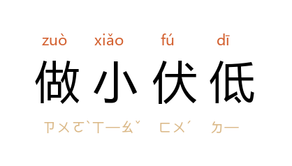 ⒈ 卑躬屈膝,低声下气。元·关汉卿元·无名氏也作「伏低做小」、「服低做小」。
