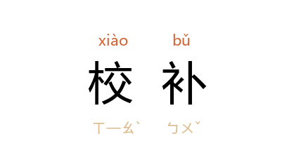 引明 胡应麟 《诗薮外编·元》:“﹝ 吴师道 ﹞邃经史,饶著述,尝校补《战国策》,大行於世。”清 俞樾 《古书疑义举例·因误夺而误补例》:“凡有夺字则当校补;乃有校补不当,以至补非其字者。”