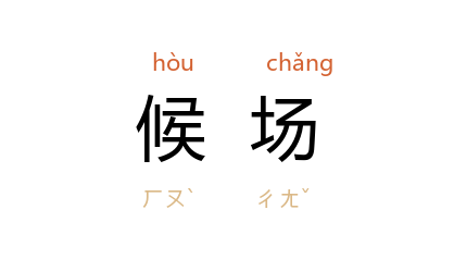 如:「演员都在后台候场。」、「表演前,她常利用候场时间闭目养神。」