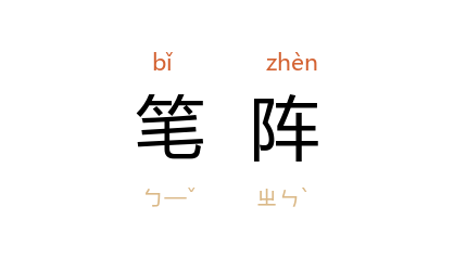 ⒉ 比喻书法。谓作书运笔如行阵。