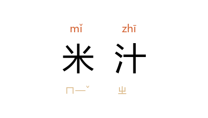引《史记·扁鹊仓公列传》:“臣即为一火齐米汁,使服之,七八日病已。”《左传·哀公十四年》“陈氏 方睦,使疾而遗之潘沐,备酒肉焉” 晋 杜预 注:“潘,米汁,可以沐头。”