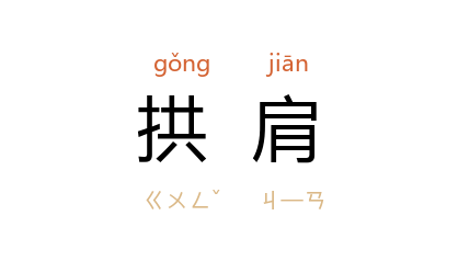 引《红楼梦》第五一回:“只有他穿着那几件旧衣裳,越发显的拱肩缩背,好不可怜见的!”