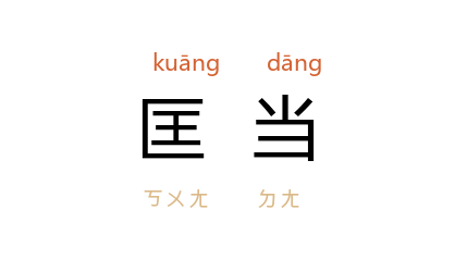引《说文·木部》“槶,筐当也” 宋 徐锴 繫传:“今俗犹有匡当之言。”段玉裁 注:“匡当,今俗有此语,谓物之腔子也。”杨树达 《积微居小学述林·文字孳乳之一斑》:“匡当有界域,与国有界域同。”