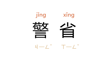 引《论语·子张》“是以君子恶居下流” 宋 朱熹 集注:“子贡 此言,欲人常自警省,不可一置其身於不善之地,非谓 紂 本无罪而虚被恶名也。”《二刻拍案惊奇》卷三七:“你有三大难,今将近了,时时宜自警省。”蔡锷 《护国军政府布告》:“曾不警省,益復放横,骄弄权威,脇肩廊庙。”