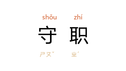 引《管子·君臣》:“论材量能谋德而举之,上之道也。专意一心,守职而不劳,下之事也。”唐 杜甫 《舟中苦热遣怀奉呈杨中丞通简台省诸公》诗:“宗英 李端公,守职甚昭焕。”《云笈七籤》卷一:“群臣守职,百官有常,因能而使之,是谓习常。”清 恽敬 《杨中立战功略》:“中立 守职勤,事上有礼,与同官温温然,未尝自言功。”