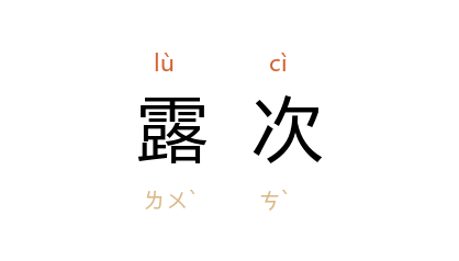 引《后汉书·献帝纪》:“壬申,幸 曹阳,露次田中。”《晋书·元帝纪》:“及 西都 不守,帝出师露次,躬擐甲胄,移檄四方。”《资治通鉴·晋愍帝建兴四年》引此文, 胡三省 注曰:“露次者,出宿于野,上无屋宇。”《新唐书·孔纬传》:“时羣臣露次 盩厔,为盗剽胁,衣囊略尽。”