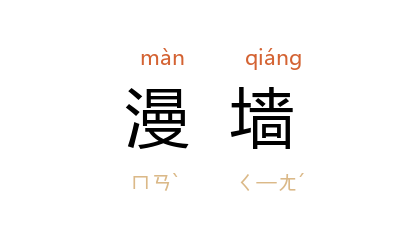 引《醒世姻缘传》第三八回:“你这不去,惹的大的们恼了,这才漫墻撩肐膊,丢开手了。”周立波 《暴风骤雨》第一部十:“一年有三百来天,牲口似地往死里给你们干活,才撂下犁仗,又拿起锄头,才挂起锄头,又是放秋垅,拿大草,割麦子,堆垛子,夹障子,脱坯,拔炕,漫墙。”自注:“漫墙,用泥糊墙。”