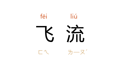 ⒊ 流星。南朝梁江淹《萧骠骑让封第三表》:“则天变彰于飞流,地眚见于震压。”《魏书·术艺传·张渊》:“及其灾异之兴,出无常所,归邪缤纷,飞流电举。”一说,指飞星和流星。两者微异。魏收注:“飞,飞星也。流,流星也。飞星与流星各异:飞星焱去而迹絶,流星迹存而不灭。”