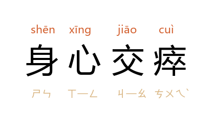 例如:「经过一夜胃痛折腾,他显得身心交瘁。」