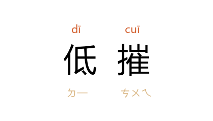 引唐 柳宗元 《闵生赋》:“心沉抑以不舒兮,形低摧而自愍。”五代 齐己 《谢王秀才见示诗卷》诗:“谁见少年心,低摧向苦吟。”宋 苏辙 《次韵吕君见赠》诗:“老病低摧方伏櫪,壮心坚鋭正当年。”