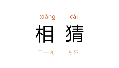 引唐 杜甫 《三绝句》之二:“门外鸕鷀久不来,沙头忽见眼相猜。”明 沉德符 《野获编·礼部·四贤从祀》:“沉(沉鲤 )遂疑揆地故抑其言,怏怏见於辞色,相猜自此始矣。”清 蒲松龄 《聊斋志异·霍女》:“黄(黄生 )实告以情,因相猜为神。”