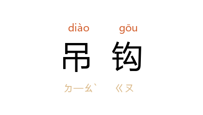 ⒉ 一种粗大的、通常有手柄的钩,尤指用以搬运货物或挂肉的钩。