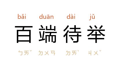 ⒈ 许多事情都有待安排和进行,比喻事业处在初创阶段。