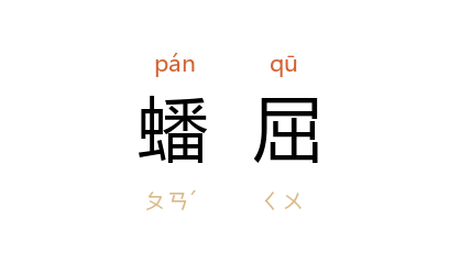 引《太平广记》卷四五八引 唐 谷神子 《博异志·李黄》:“但见枯槐树中,有大蛇蟠屈之跡。”明 蒋一葵 《长安客话·功德寺》:“寺两侧皆古松,枝柯青翠,蟠屈覆地,盖塞外别种。”清 和邦额 《夜谭随录·朱佩茝》:“朱 试往观,物方蟠屈,闭目如睡。”