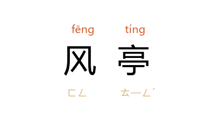 引唐 朱庆馀 《秋宵宴别卢侍御》诗:“风亭弦管絶,玉漏一声新。”宋 王安石 《与微之同赋梅花得香字》之一:“风亭把盏酬孤艷,雪径回舆认暗香。”清 黄景仁 《感旧杂诗》:“风亭月榭记绸繆,梦里听歌醉里愁。”