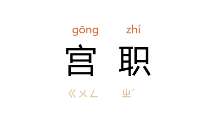 引《南齐书·张绪传》:“吏部尚书 袁粲 言於帝曰:‘臣观 张绪 有 正始 遗风,宜为宫职。’”《宋史·宦者传一·刘承规》:“﹝ 大中祥符 ﹞五年,以疾求致仕。修宫使 丁谓 言 承规 领宫职,藉其督辖,望勿许所请,第优赐告詔,特置 景福殿 使名以宠之,班在客省使上。”