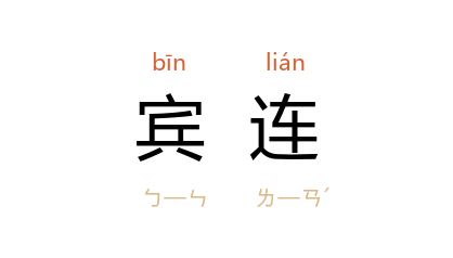 引汉 班固 《白虎通·封禅》:“继嗣本则宾连生於房户。宾连者,木名也,其状连累相承,故生於房户,象继嗣也。”北周 庾信 《喜晴应诏敕自疏韵》:“有序属宾连,无私表平宪。”