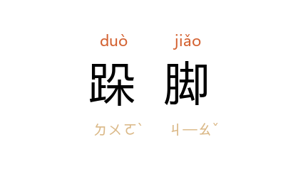 ⒈ 脚用力踏地,表示着急、生气、悔恨等情绪。