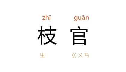 引《韩非子·和氏》:“不如使封君之子孙三世而收爵禄,絶灭百吏之禄秩,损不急之枝官,以奉选练之士。”明 王志坚 《表异录·职官》:“《书》云尸位,《诗》曰素餐, 南君 谓之荒饱, 吴起 谓之枝官。”清 王韬 《瓮牖馀谈·南楚双忠传》:“吴君 职司学校,不过一备位枝官耳。”