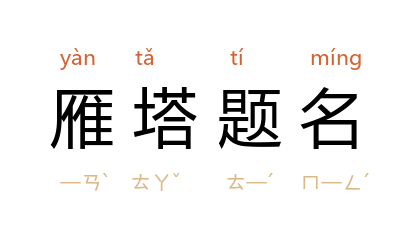 后因以“雁塔题名”指进士及第。 《儿女英雄传》第十二回:“第一件事是劝你女婿读书上进,早早的 雁塔 题名。”