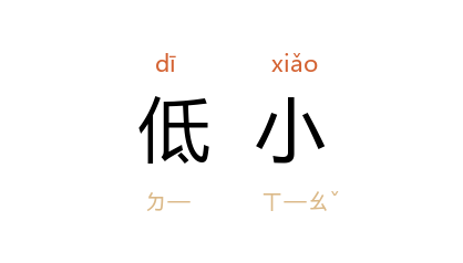 引唐 杜甫 《绝句漫兴》之三:“熟知茅斋絶低小,江上燕子故来频。”宋 辛弃疾 《清平乐》词:“茅簷低小,溪上青青草。”宋 文天祥 《<正气歌>序》:“室广八尺,深可四寻;单扉低小,白间短窄。”
