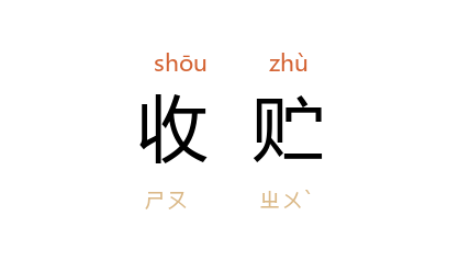 引唐 罗隐 《金钱花》诗:“若教此物堪收贮,应被豪门尽劚将。”《警世通言·钝秀才一朝交泰》:“﹝长老﹞随唤火工道人,将笊篱笊起沟内残饭……日色晒乾,用磁缸收贮。”