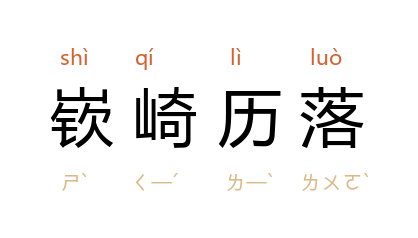 ⒈ 比喻人品高洁,有骨气。南朝宋·刘义庆也作「嵚崎磊落」、「欹嵚历落」。
