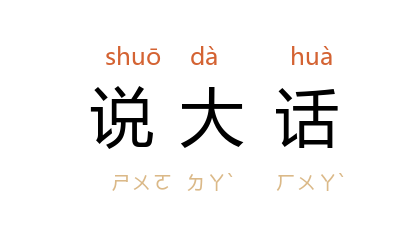 引《景德传灯录·卷一九·韶州云门山文偃禅师》:「莫一似落汤螃蟹,手脚忙乱,无你掠虚说大话处。」《初刻拍案惊奇·卷三》:「今日说一个恃本事说大话的,受了好些惊恐,惹出一场话柄来。」