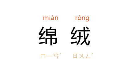 引《醒世姻缘传》第八八回:“轧了一百斤绵羢,四匹自织绵紬,四十根大花布手巾,着了一个觅汉 鲍恩 回去谢 韦美 看顾。”萧红 《生死场》四:“﹝ 月英 ﹞生就一对多情的眼睛,每个人接触她的眼光,好比落到绵绒中那样愉快和温暖。”