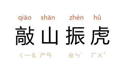 引《儿女英雄传》第三一回:“这要不用个敲山振虎的主意,怎的是个了当?”亦作“敲山震虎”。 姚雪垠 《李自成》第一卷第二四章:“李自成 决定先攻打这座山寨,不仅为着它富甲一方,也为的先攻下它有敲山震虎的作用,使别的山寨不敢再抗不借粮。”