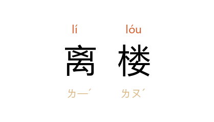 引汉·司马相如〈长门赋〉:「罗丰茸之游树兮,离楼梧而相撑。」汉·王延寿〈鲁灵光殿赋〉:「倔佹云起,嵚崟离楼。」