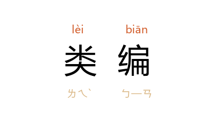 引《明史·后妃传一·成祖徐皇后》:“尝採《女宪》、《女诫》作《内训》二十篇,又类编古人嘉言善行,作《劝善书》,颁行天下。”清 厉荃 《<事物异名录>自序》:“退而购其书读之,见事物各有异名,心窃喜之,欲类编成帙,以备省览。”