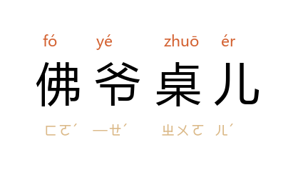 引《儿女英雄传》第三七回:“当下公子夫妻进去,见堂屋里佛爷桌儿上换了簇新的黄布桌围;桌儿上的锡蜡五供儿擦得镜亮。”亦省称“佛桌儿”。 《儿女英雄传》第三七回:“佛桌儿前早铺下了个蒲垫儿。”