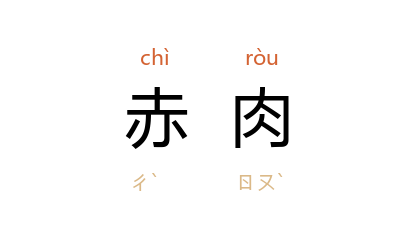 引唐 于濆 《边游录戍卒言》诗:“赤肉痛金疮,他人成 卫 霍。”《五灯会元·临济玄禅师法嗣·宝寿沼禅师》:“师曰:‘不斩死汉。’院曰:‘斩。’师便打。院连道:‘斩,斩。’师又随声打。师却回方丈,曰:‘适来这僧将赤肉抵他乾棒,有甚死急!’”