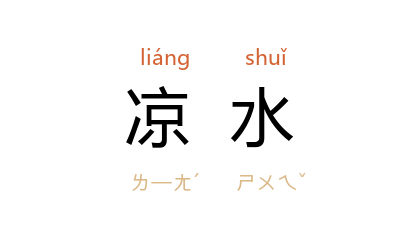 引《儿女英雄传》第四回:“早有跑堂儿的拿了一个洗脸的木盆,装着热水,又是一大碗凉水。”魏巍 《谁是最可爱的人·挤垮它》:“打过三八线,凉水拌炒面。”