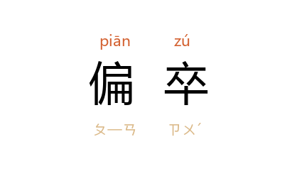 ⒈ 战车与兵卒。《管子·君臣下》:“虽有偏卒之大夫,不敢有幸心,则上无危矣。”郭沫若等集校引俞樾云:“'偏'者车数,'卒'者人数,成七年《左传》杜注引《司马法》曰:'百人为卒,车九乘为小偏,十五乘为大偏'是也。有偏卒之大夫,盖谓大夫之家有车徒者耳。”一说“偏卒”皆副佐之义。见集校引丁士涵说。