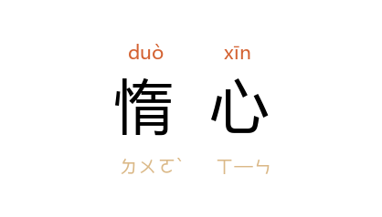 引《国语·晋语四》:“重耳 敢有惰心,敢不从德。”唐 韦应物 《学仙吟》之二:“石上凿井欲到水,惰心一起中路止。”曾松乔 《<青岛潮>弁言》:“譬如人有惰心,惰即心亡之一,于是而斵丧身体之诸败德相乘以起,而其人遂不可救药矣。”