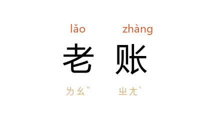 ⒈ 亦作“老帐”。旧债。亦指过去事件的记录或未了结的事。