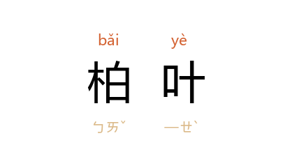 ⒈ 柏树的叶子。可入药或浸酒。