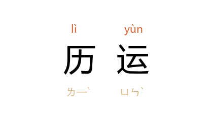 参见“歷运”。天象运行所显示的一个朝代的气数、命运。古代认为朝代的兴衰更迭与天象运行相应。 《汉书·哀帝纪》:“汉 家歷运中衰,当再受命,宜改元易号。”