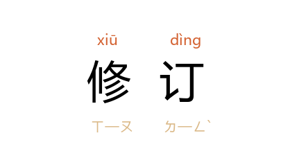 引宋 朱熹 《答滕德章》:“熹 旧所为书,近加修订,稍有条理。”田北湖 《论文章源流》:“虑其害政,而削其迹; 孔氏 修订国典,更有黜除。”