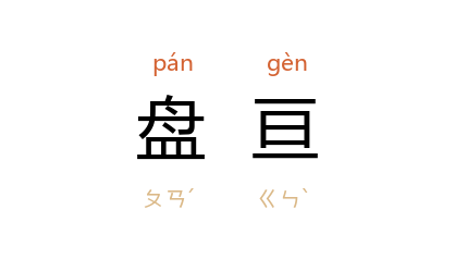 引唐 李翱 《岭南节度使徐公行状》:“黄 氏之族最强,盘亘十数州。”明 徐弘祖 《徐霞客游记·游武彝山日记》:“一峰与 猫儿石 相对峙,盘亘亦如 鼓子。”清 许承钦 《夏仲自正觉寺游佛峪遂登龙洞山绝顶》诗之五:“仰窥旋螺顶,海涛气盘亘。”