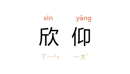 引《魏书·崔僧渊传》:“加以累叶重光,地兼四岳,士马强富,人神欣仰,道德仁义,民不能名。”唐 骆宾王 《于紫云观赠道士》诗:“羽盖徒欣仰,云车未可攀。”明 张居正 《与南学院吴初泉书》:“才品士风,繫於公之身者,岂其微哉!欣仰欣仰。”