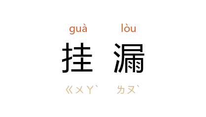 ⒈ 亦作“掛漏”。犹遗漏。